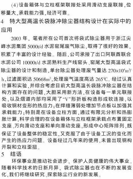 摘要:分析大型高溫袋式除塵器在結(jié)構(gòu)方面存在的問題,提出設(shè)計(jì)的要點(diǎn)和技術(shù)措施,列舉實(shí)際應(yīng)用的范例,供同行參考交流。