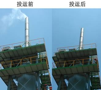 圖5國電北侖電廠#7機組WESP投運前、后煙囪排放對比圖